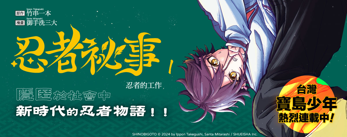 《忍者祕事》是由竹串一本擔任原作及御手洗三大負責作畫的作品,於2024年9月起在集英社《週刊少年JUMP》上正式開啟連載,也是兩個老師第二次攜手創作。此部作品自連載起便受到《齊木楠雄的災難》作者麻生周一的好評,前陣子更奪下2025年「下一部人氣漫畫大賞」的獎項,是近期最受到讀者們矚目的少年漫畫之一。